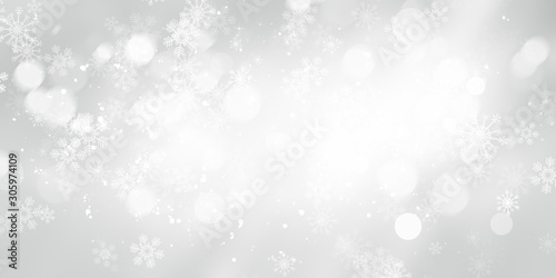 white and gray Christmas light with snowflake bokeh background, Winter backdrop wallpaper.