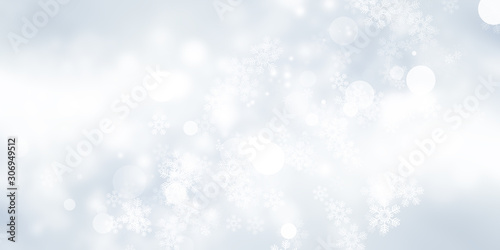 white and gray Christmas light with snowflake bokeh background, Winter backdrop wallpaper.