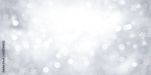 white and gray Christmas light with snowflake bokeh background, Winter backdrop wallpaper.
