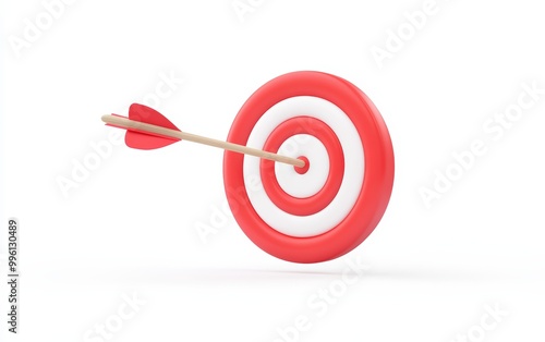 White arrow hit the center of the red target 3d icon cartoon style floating isolated on white background