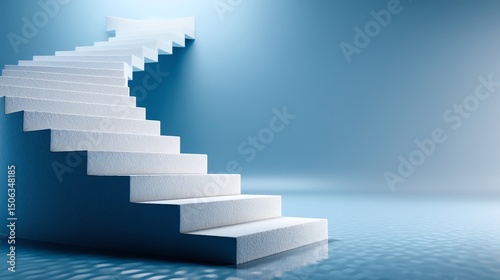White Arrows on Blue Cube Stairs: Minimalist 3D Business Path Concept with Copy Space