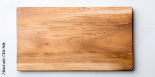 White background, flat lay view of wooden cutting board.
