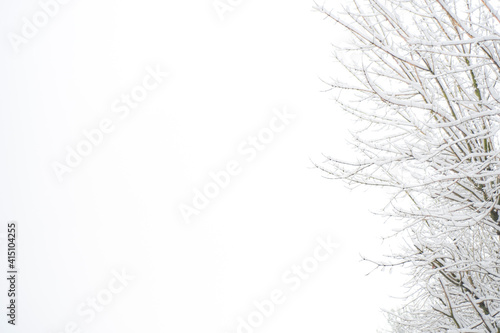 White background for text on a winter theme with tree branches on the side. Cool template for presentation, booklet or book cover
