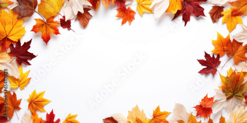 White background, Frame with many autumn leaves. Image to announce that there is an event, copy space.