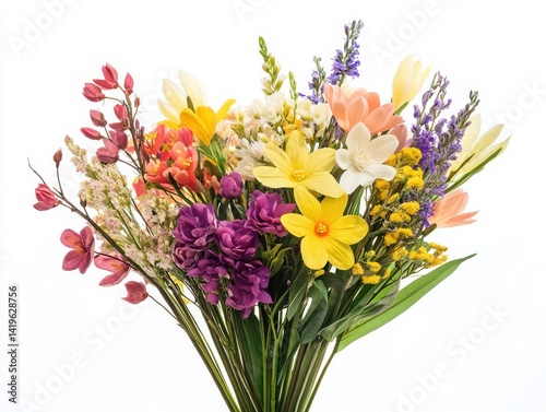 White background showcasing an isolated spring flower bunch collection.