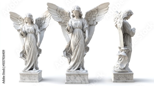 White background, stone statues of goddesses, angels, Athena, beautiful women, Generative AI.白い背景、女神の石像、天使の石像、アテナの石像、美女の石像、Generative AI