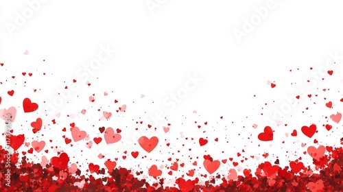 White background with a scattering of red hearts of various sizes, clustered symmetrically at the bottom. Some hearts are flat, while others are folded or appear three-dimensional