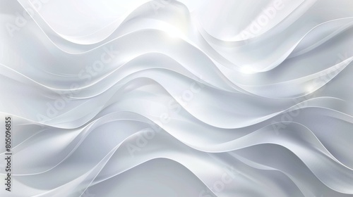 White background with soft wave lines, simple and elegant design for banner or poster. Vector illustration of white wavy shapes on light grey background.