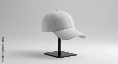 White Baseball Cap on Display Stand: A Clean and Minimalist Mockup