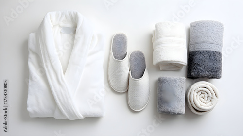 White bathrobe, slippers, and fresh towels for relaxation