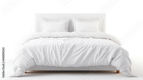 White bed with bedding isolated on white background.