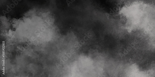 White Black empty space dust cloud explosion. Gray smoke or fog color isolated on transparent dark cloudscape atmosphere background. Black and grey watercolor grunge texture.