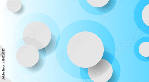 White blue glossy circles abstract minimal geometric background. Vector tech design