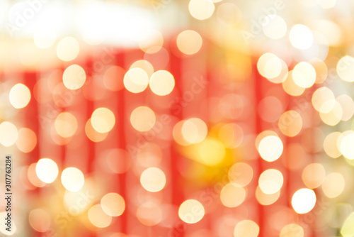 white bokeh blur background. Yellow circle light on red background. Light gold sparkle background.