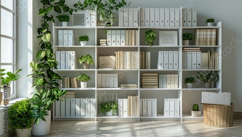 White Bookshelf with Plants and Books