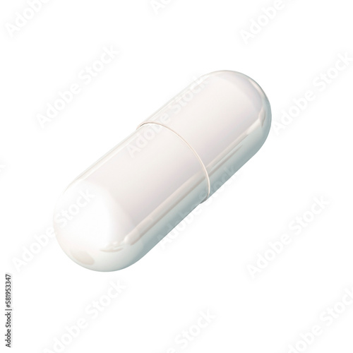 White capsule pill Isolated . Mock up realistic pill,copy space,top view . 3D Rendering