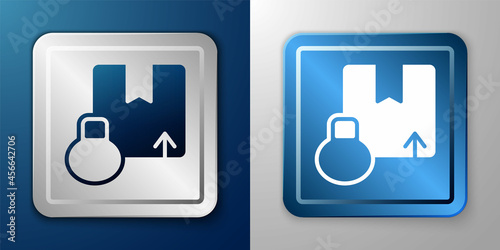 White Carton cardboard box icon isolated on blue and grey background. Box, package, parcel sign. Delivery and packaging. Silver and blue square button. Vector
