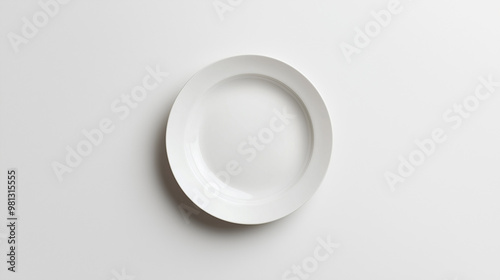 White Ceramic Plate with Simple Design Hovering Slightly Above a Plain White Background