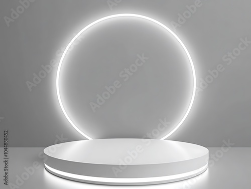 White Circular Platform Illuminated By Neon Light