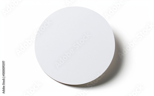 White circular sign with a shadow on a blank white background. Minimal design concept.