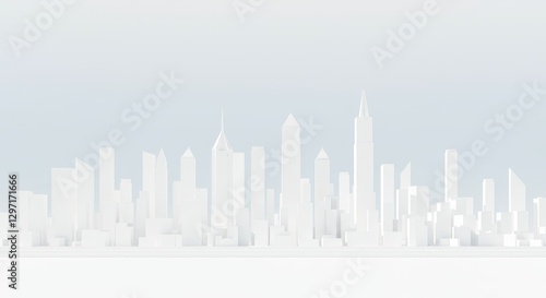 White Cityscape Skyline on - Modern city skyline, clean design, , architectural, urban landscape, symbolic of progress, growth, and future
