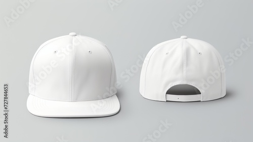 White classic snapback front and back in pure white without logo on grey background as a design mockup