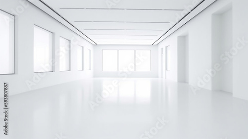 White clean empty architecture interior space room studio background wall display products minimalism. 3d rendering.