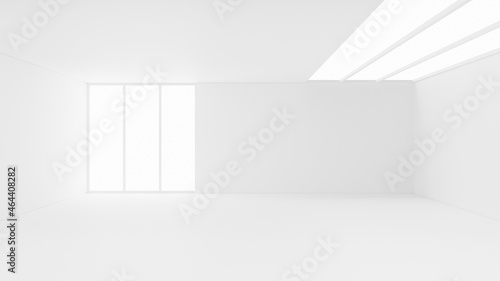 White clean empty architecture interior space room studio background wall display products minimalistic. 3d rendering.