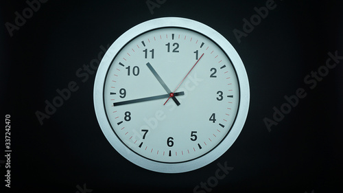 White clock beginning of time 10.43 am or pm, on black background, Copy space for your text, Time concept.