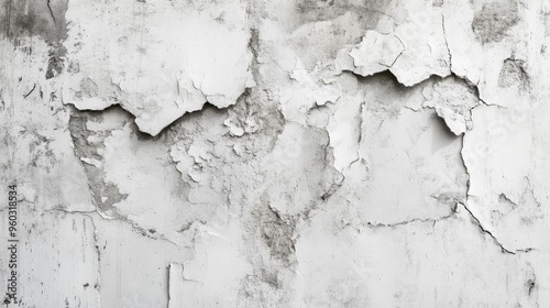 White concrete wall with a cracked surface, adding character and a raw aesthetic to an industrial-style space. -