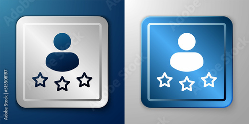 White Consumer or customer product rating icon isolated on blue and grey background. Silver and blue square button. Vector