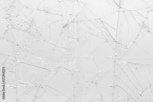White cracked glass texture background. Texture broken glass window with cracks. Broken screen.