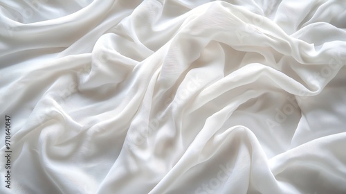 White Crumpled Bedsheet Background Cotton Fabric Texture : Generative AI