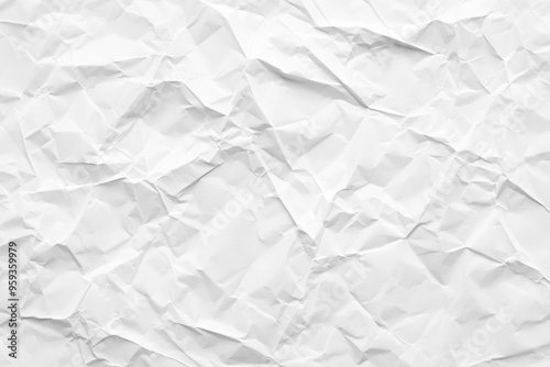 White Crumpled Paper Texture Background, High-Resolution, Flat Lay, Top View