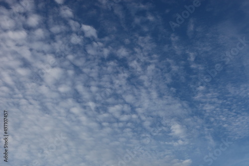 White cumulus clouds in a blue sky with a place for text, Concept lettering and advertising,
