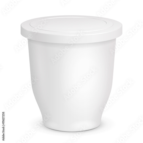 White Cup Tub Food Plastic Container For Dessert, Yogurt, Ice Cream, Sour Sream Or Snack. Illustration Isolated On White Background. Mock Up Template Ready For Your Design. Vector EPS10