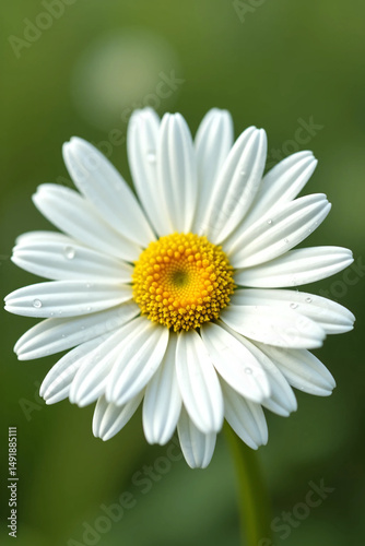 White Daisy Flower with Yellow Center on Soft Green Background - Ultra-Detailed, Bright, and Clean Floral Visual for Wellness, Eco Lifestyle, or Natural Product Branding
