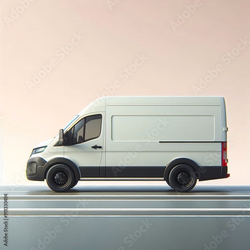White delivery truck isolated side view vector illustration