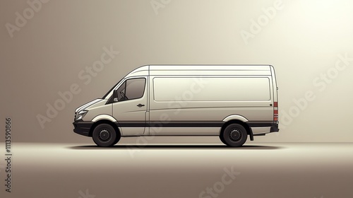 White Delivery Van Profile View on Minimalist Background for Transportation Concepts