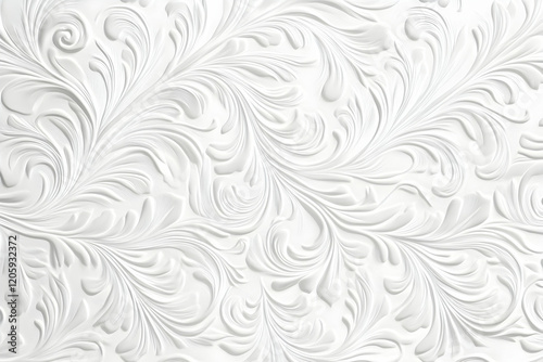 White embossed paper with an intricate floral pattern, textured background, and white wall wallpaper.