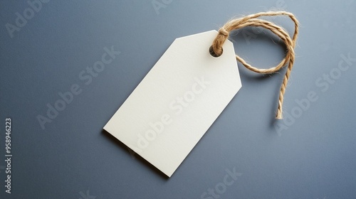 White empty tag for the price tag with a garter on a gray background, layout design template