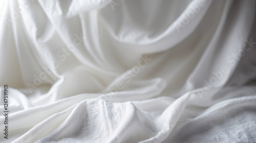 White fabric drapes and folds with soft textures and light shadows creating an elegant backdrop with Copy Space for text placement.