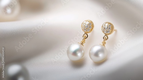 White fabric, elegant earrings, soft light, highlighting the sparkle of the gems, making the intricate design and luxurious luster stand out, creating a refined and elegant presentation.