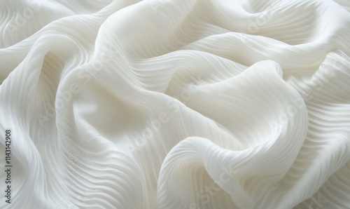 White Fabric Wallpaper with Ripples. Luxury Surface Texture.