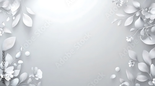 White floral border, blank space, elegant background, design template