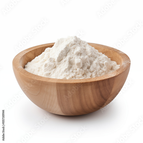 White Flour in Wooden Bowl Baking Ingredient Close Up
