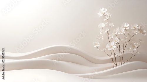 White Flowers Against a Soft Wave Background