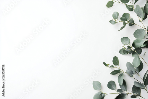 white frame background with green leaves