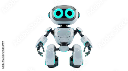 White friendly robot standing on transparent background