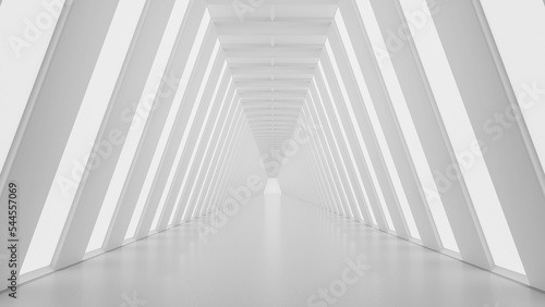 White futuristic tunnel with lights. Modern style abstract 3d rendered background.